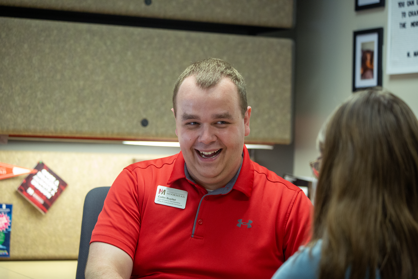 Collin Bueltel ('22, university studies) is a past GRIT participant who, now as MSUM's lead admissions representative, loves sharing his positive experience with prospective students. He says his GRIT coaches cared about his success during his first year and beyond, helping him set academic and personal goals and celebrating with him when he accomplished them.